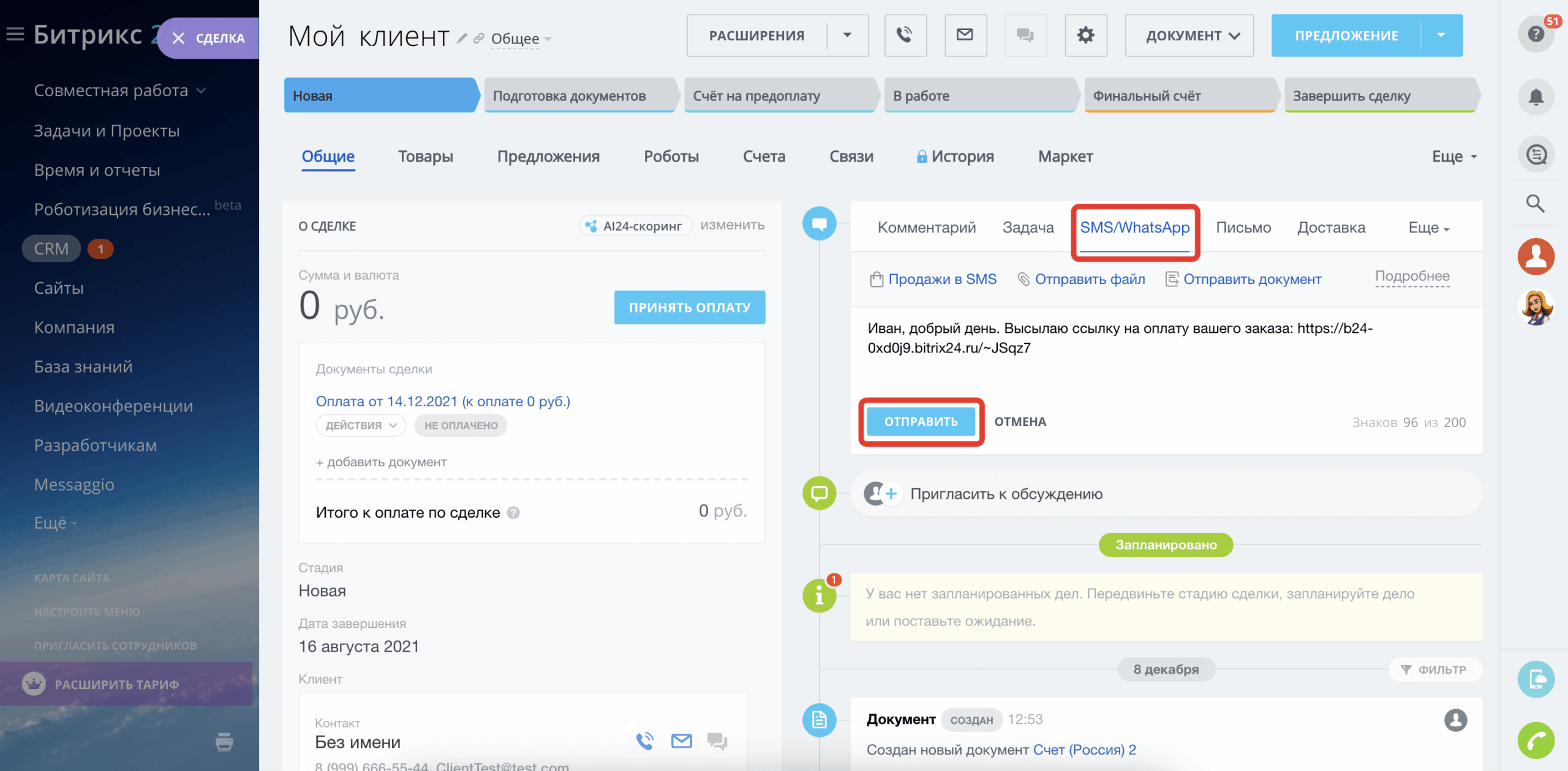 - Отправка SMS, Viber-, VK- и WhatsApp-сообщений от имени вашего бренда